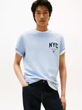 Tommy Hilfiger Cotton Regular Fit Short Sleeve NYC Logo T-Shirt, Heathered Blue