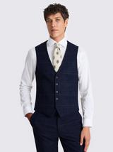 John Lewis Stanton Super 100's Grid Regular Fit Waistcoat, Navy