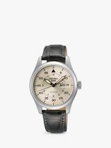 Hamilton H64635560 Men's Khaki Aviation Pilot Day Date Automatic Leather Strap Watch, Green/Brown£915.00