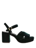 Esska Clara Velvet Cross Strap Block Heel Sandals, Green