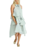 A-VIEW Demi Bow Halterneck Layered Knee Length Dress, Light Blue