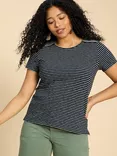 White Stuff Nelly Stripe Floral Organic Cotton Blend Top, Green/Multi