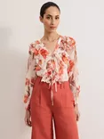 Sosandar Palm Print Ruffle Top, Blue/White