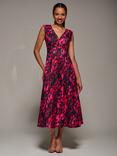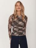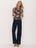 Hobbs Aimee Abstract Leaf Jersey Top, Navy/Green
