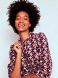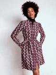Reiss Lora Palm Flippy Dress, Burgundy/Cream