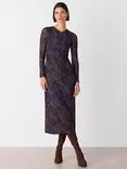 Whistles Abstract Print Long Sleeve V Neck Midi Dress