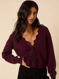 Nobody's Child Crochet Trim V-Neck Cardigan, Burgundy, Burgundy