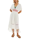 Accessorize Embroidered Fringe Kaftan, Ivory
