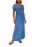 VIVERE Zelma Plisse Asymmetric Maxi Dress, Bright Blue