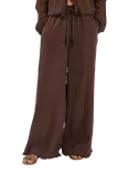 Accessorize Crinkle Wide Leg Trousers, Chocolate, Chocolate