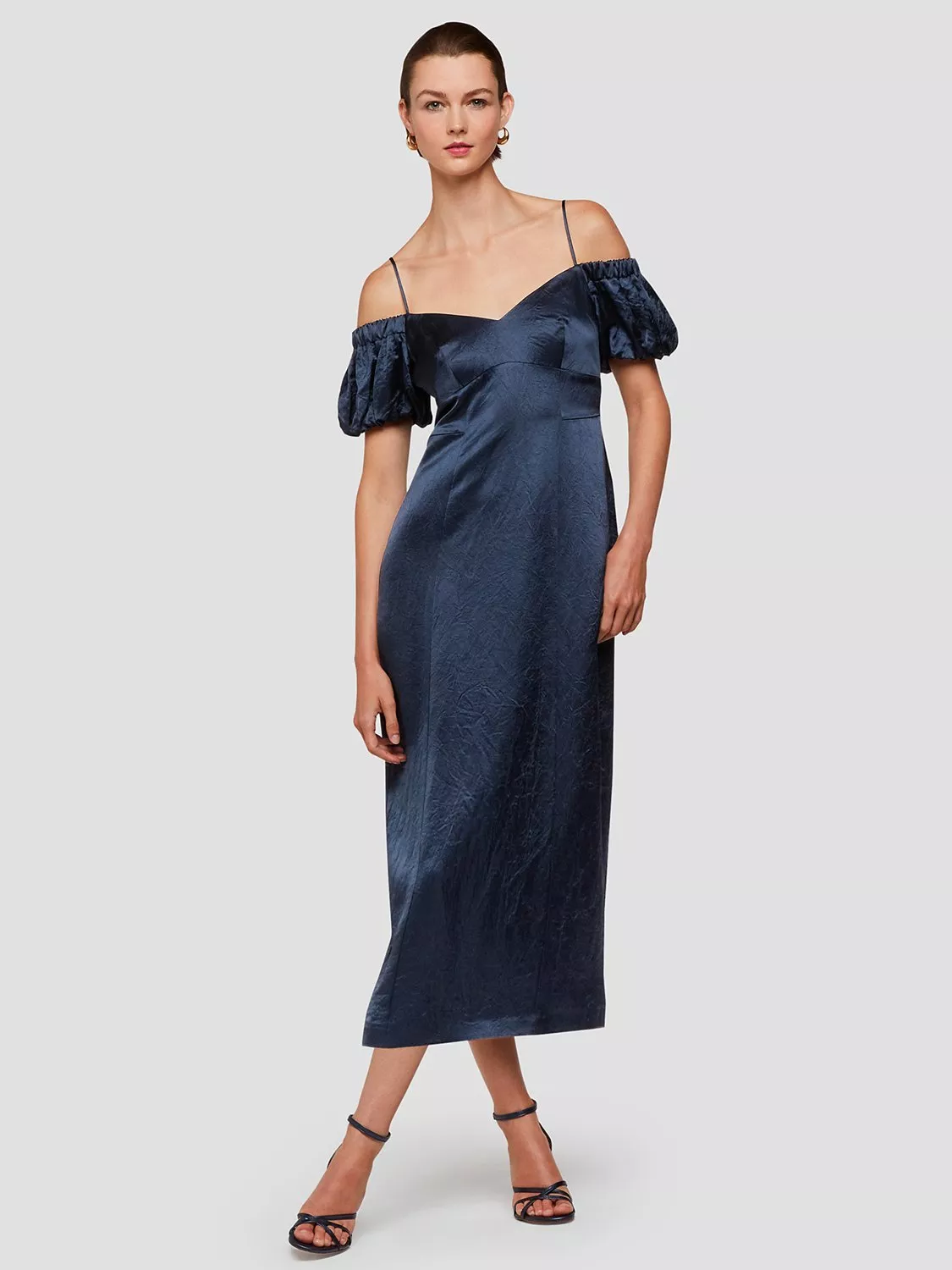 AllSaints Alexia Ruched Maxi Skirt, Blue Mid