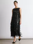 Sequin Fringe Midi Dress, Black