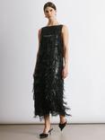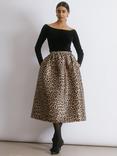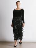 Albaray Velvet Sequin Square Neck Midi Dress, Bronze