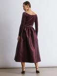 Albaray Velvet Taffeta Bardot Dress, Burgundy