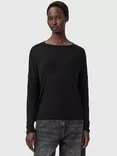 AllSaints Waved Crew Neck Cotton T-Shirt, Jet Black