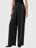 AllSaints Val Linen Blend Tapered Cargo Trousers, Dark Brown