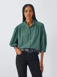 AND/OR Kate Ruffle Neck Striped Cotton Blouse, Pink/Multi