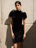 Ro&Zo Madison Velvet Tulip Sleeve Ruched Dress, Black