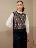 Brora Folk Fair Isle Pure Merino Wool Tank Top, Navy