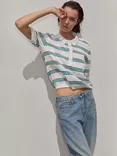 HUSH Sequin Stripe Knit Polo Top, Ecru/Teal