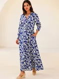 Eliza Floral Print Maxi Shirt Dress, Navy/Cream