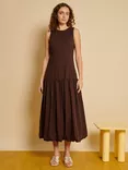 GHOSPELL Maryam Bubble Hem Midi Dress, Brown