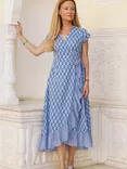 Demi Cap Sleeve Floral Print Wrap Cotton Midi Dress, Blue