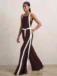 Reiss Petite Salma Colour Block Jumpsuit, Burgundy/Cream