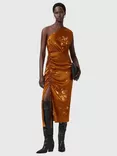 Laura Asymmetric Ruched Dress, Ania Rust Brown