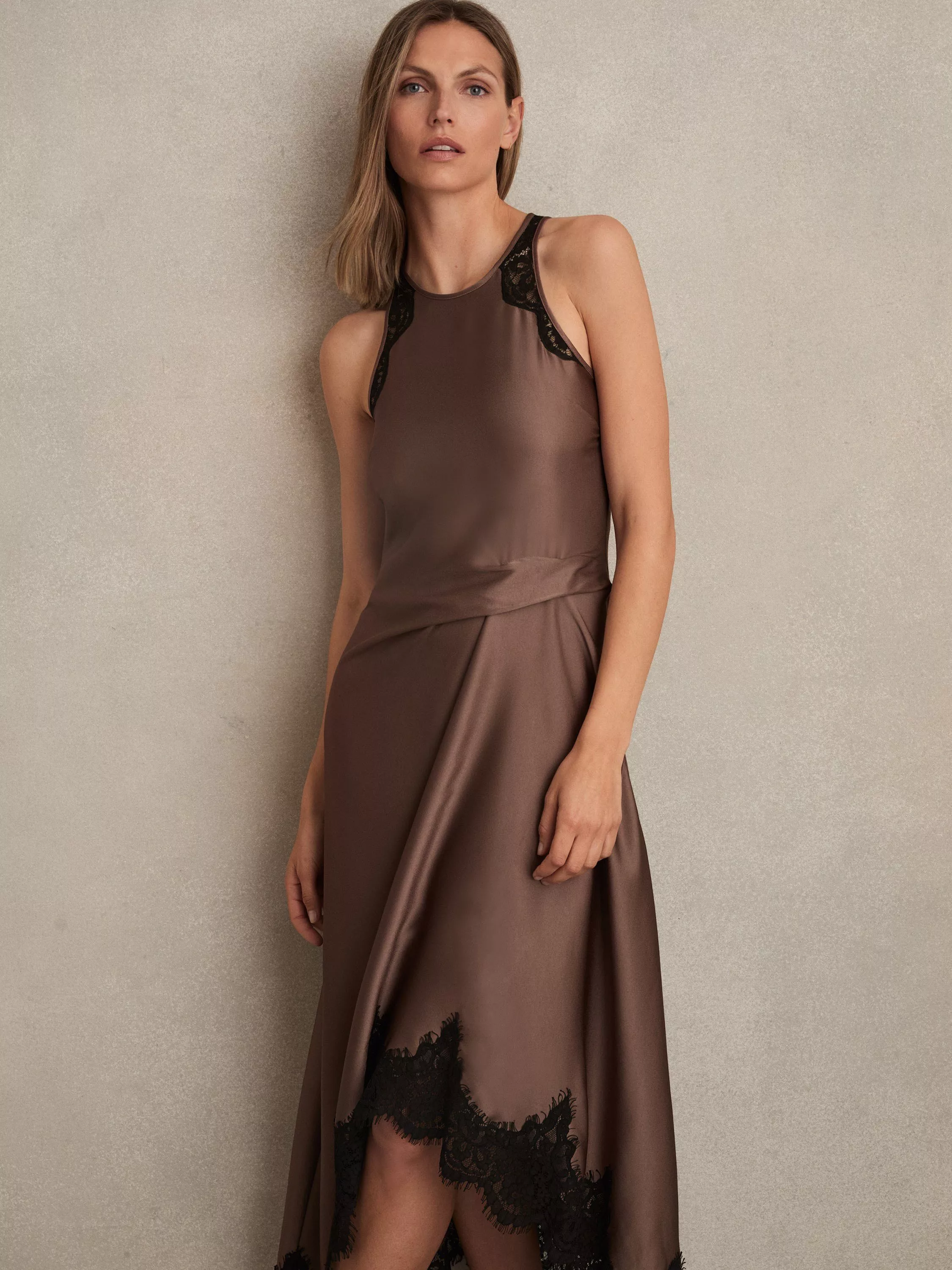 Reiss Anais Satin Drape Lace-Trim Midi Dress£180.00£78.00 – £128.00View this product in other colours by selecting one of the following:This colour is availableThis colour is availableReduced To Clear