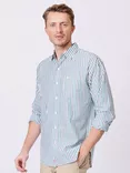 Aubin Gladstone Cotton Poplin Shirt, White/Jade Stripe