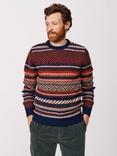 Aubin Fairisle Crew Neck Wool Jumper, Navy/Red