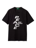 Benetton Cotton Regular Fit Peace Graphic T-Shirt, Black