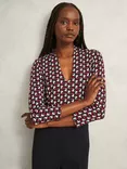 Hobbs Aimee Graphic Jersey Top, Pink/Ivory