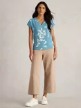 White Stuff Nelly Floral Notch Neck T-Shirt, Blue/Multi