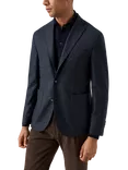 Prince of Wales Check Wool Soft Jacket, Navy Blue