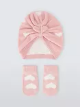 John Lewis Baby Hearts Hat & Mittens Set, Pink