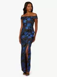 Adrianna Papell Bardot Neck Ruffle Trim Jersey Maxi Gown