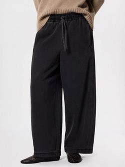 Casual Wide Barrel Leg Denim Trousers, Washed Black