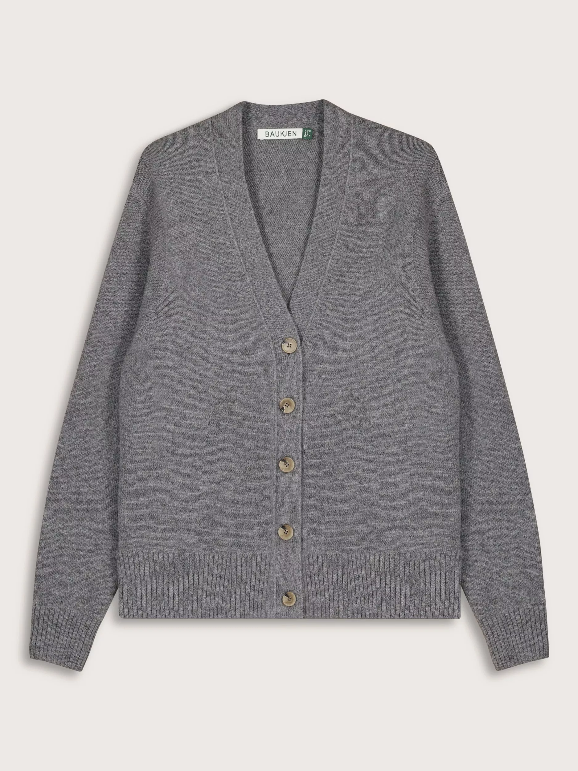 Baukjen Celine V-Neck Wool Rich Cardigan, Blossom, Grey Marl