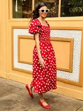 Baukjen Alicia Polka Dot Pure Organic Cotton Midi Dress, Crimson/Multi
