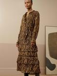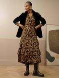 Brora Leaf Print Frill Collar Dress, Jay/Emerald