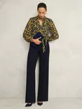 Hobbs Aria Pussybow Neck Tie Top, Navy/Yellow