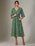 Jolie Moi Floral Tie Waist Midi Dress, Green