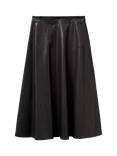 Benetton Flared PU Leather Midi Skirt, Black