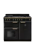 Rangemaster Classic Deluxe CLDL100DFP 100cm Dual Fuel Range Cooker with Gas Hob, Charcoal Black/Antique Brass