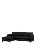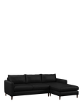 John Lewis Draper II RHF Chaise Leather Sofa, Dark Leg, Matt Black