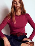 Boden Super Soft Frill Top, Burgundy Red