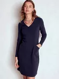 Ellen V-Neck Ottoman Dress, Navy