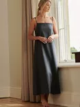 Herringbone Cotton Twill Strappy Nightdress, Slate